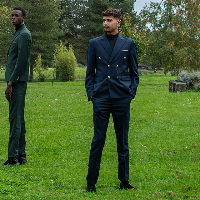 Costume homme deux pièces alliant élégance et savoir-faire, avec veste et pantalon en tissu haut de gamme. Chaque détail reflète la qualité et le raffinement, pour un style exclusif en édition limitée.