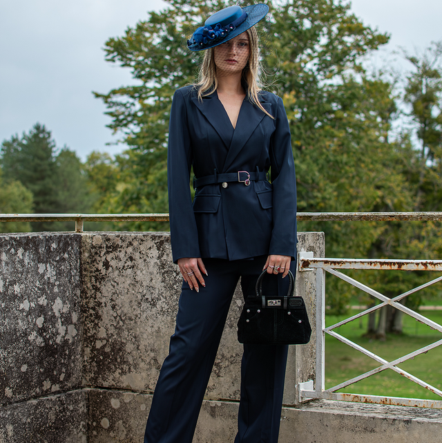 Ensemble tailleur chic, composé d’une veste ceinturée et d’un pantalon long. Réalisé en édition limitée, dans une couleur unie raffinée. Made in France 🇫🇷