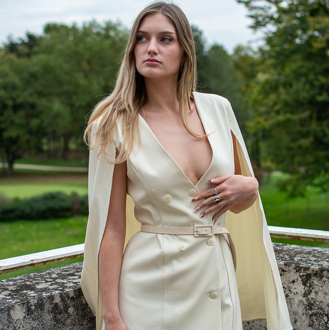 Élégance intemporelle et modernité se rencontrent dans cette robe cape à la coupe ajustée. Parfaite pour les déplacements d’automne ou les sorties en ville, elle enveloppe la silhouette avec grâce tout en affirmant un style sophistiqué et sûr de lui.